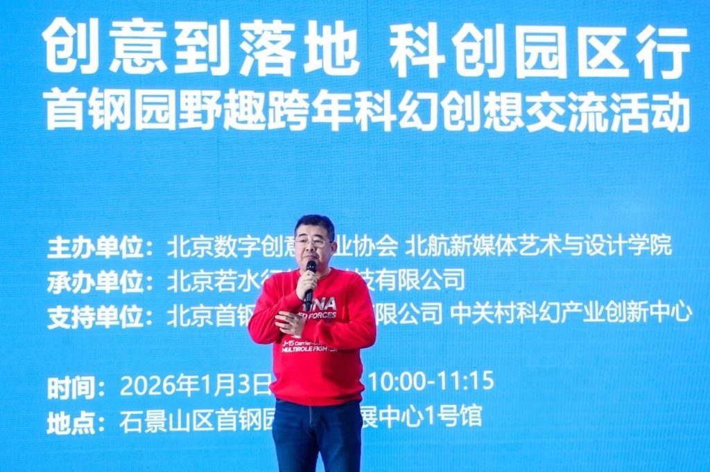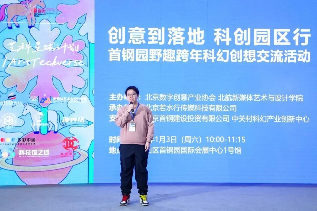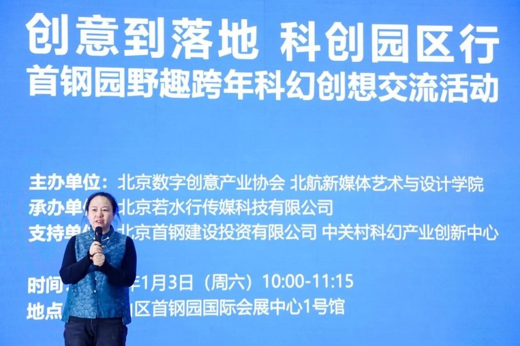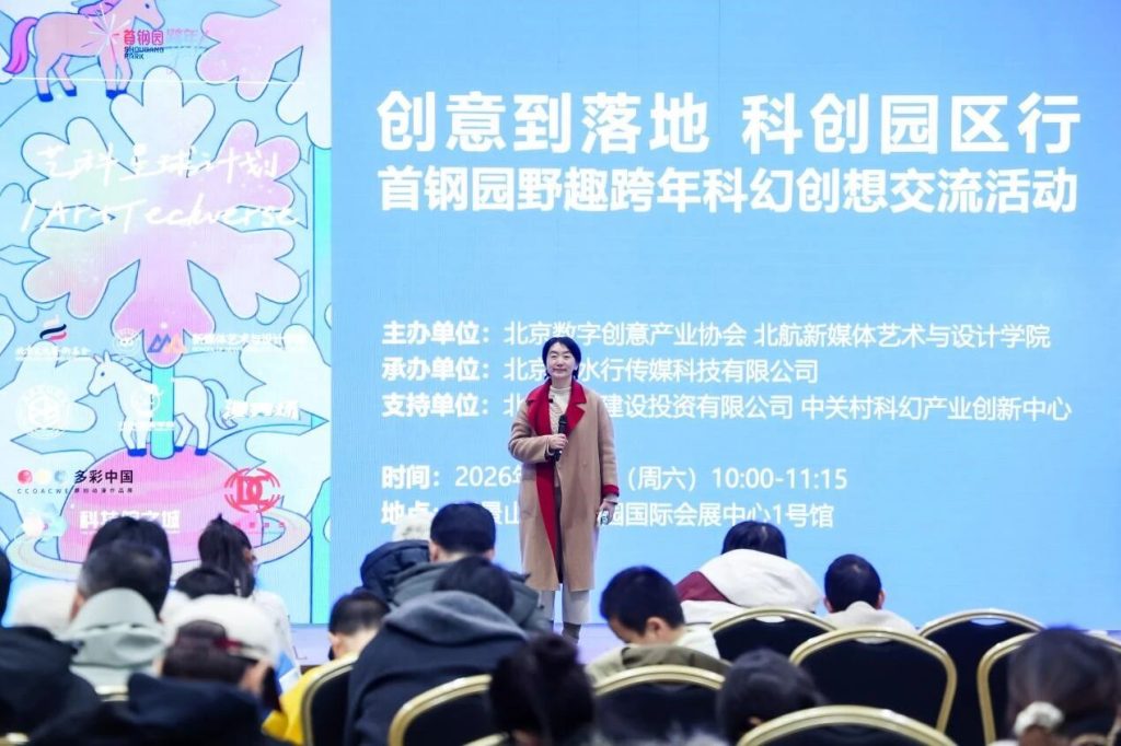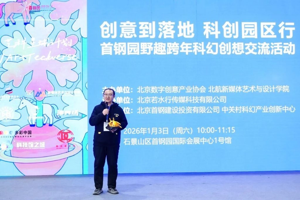 2026年1月3日,“创意到落地·科创园区行——首钢园野趣跨年科幻创想交流活动”在北京市石景山区首钢园国际会展中心举行。活动由艺科星球策划发起,北京数字创意产业协会、北京航空航天大学新媒体艺术与设计学院主办,北京若水行传媒科技有限公司承办,北京首钢建设投资有限公司、中关村科幻产业创新中心支持。活动聚焦人工智能、沉浸式技术与文化内容创新,通过线上线下结合服务于首钢园区的高校学者、青年创作者及多元化产业实践者等90余人,共同探讨科技赋能文化创新、推动科幻内容从创意走向落地的实践路径。