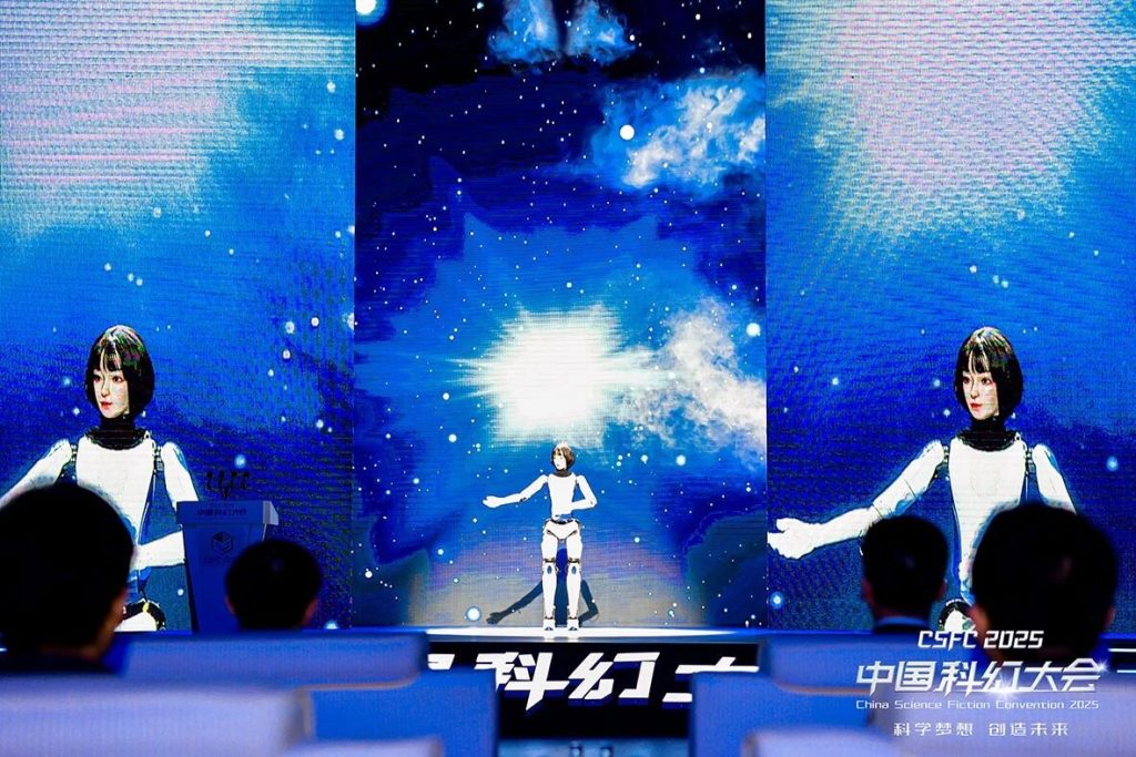 开幕式上还发布了《2025中国科幻产业报告》和中国首部在太空拍摄的实景电影《窗外是蓝星》;在“科幻·中国”大咖说环节,著名科幻作家刘慈欣、《窗外是蓝星》导演朱翌冉与青年创业者史晓刚深入阐述对科幻与现实科技关系的深入思考,畅谈中国科幻的未来之路。