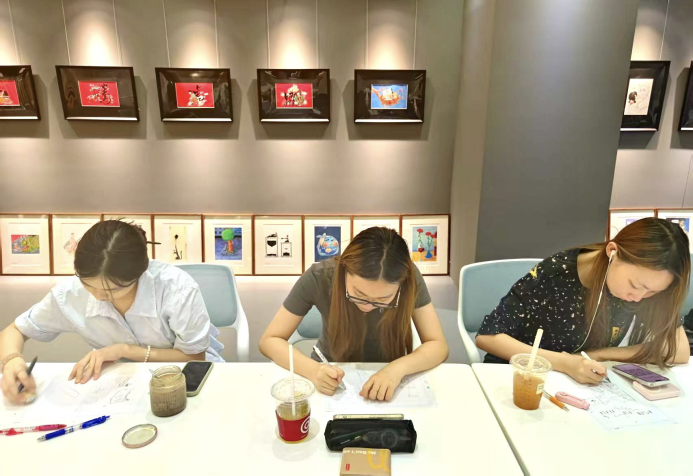 现场学员们观摩学习漫画作品
